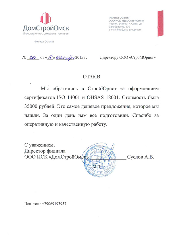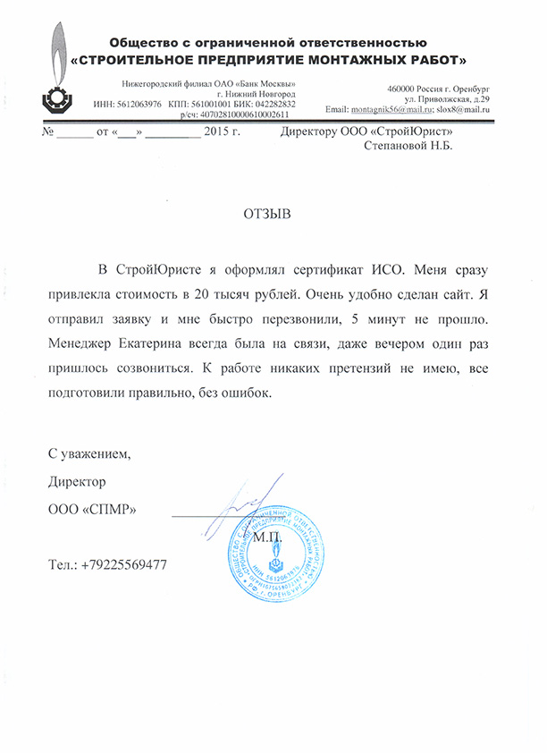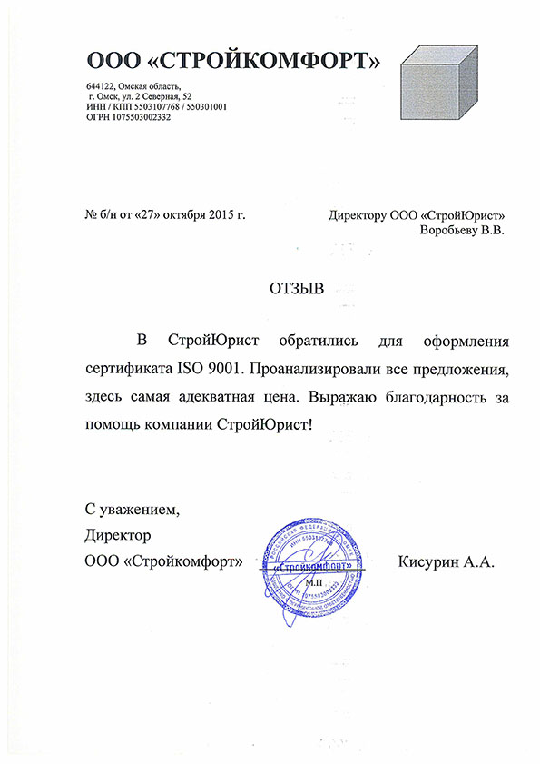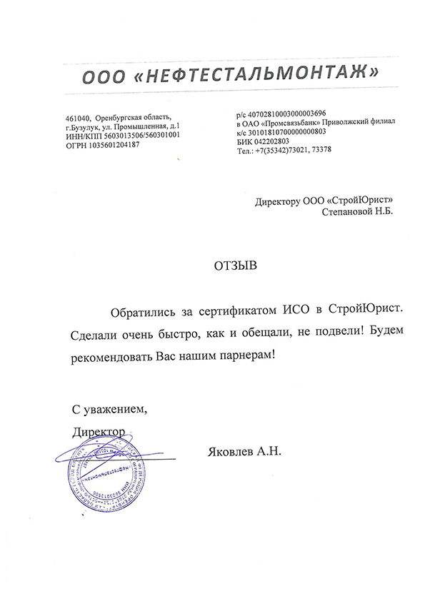 Отзывы клиентов "СтройЮрист" по ISO в Нижневартовске