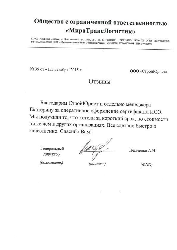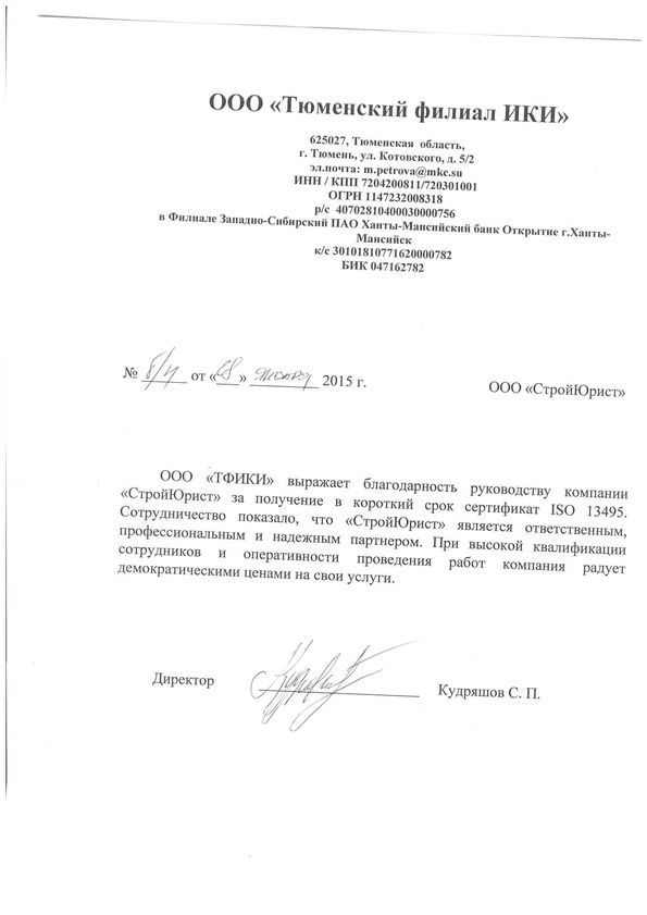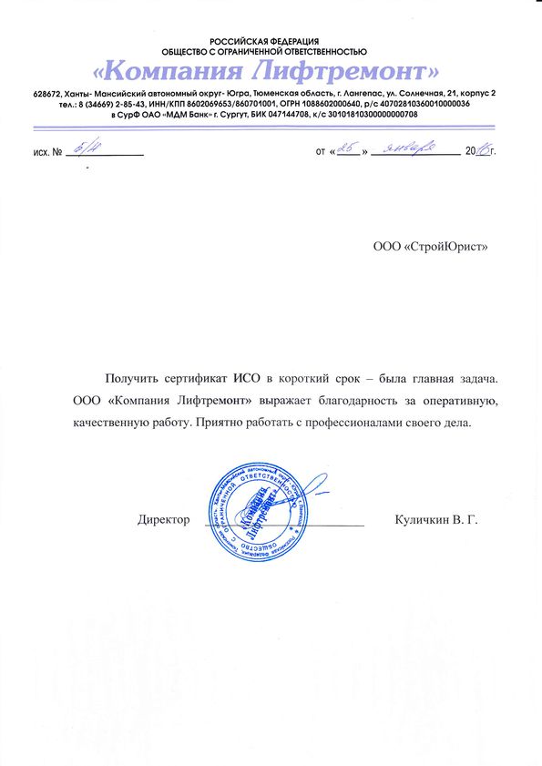 Отзывы клиентов "СтройЮрист" по ISO в Нижневартовске