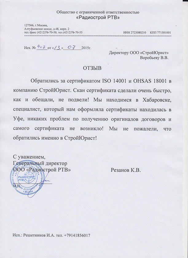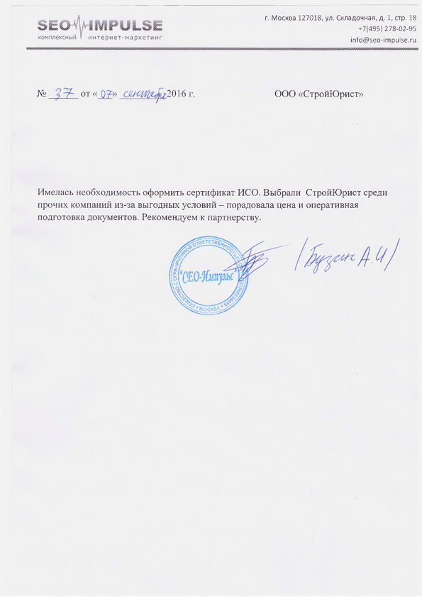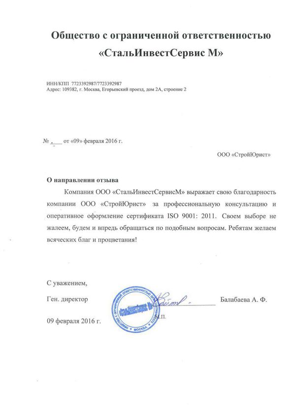 Отзывы клиентов "СтройЮрист" по ISO в Нижневартовске