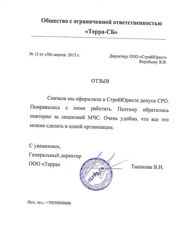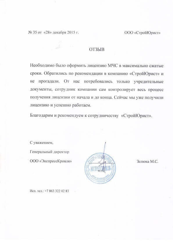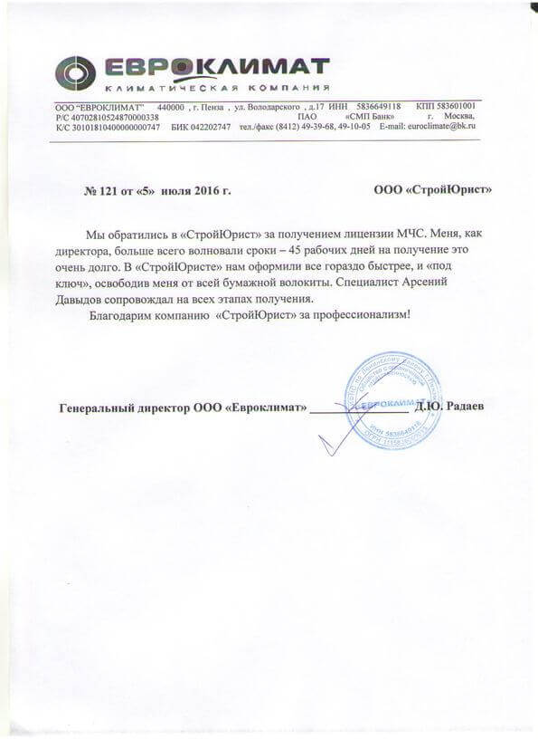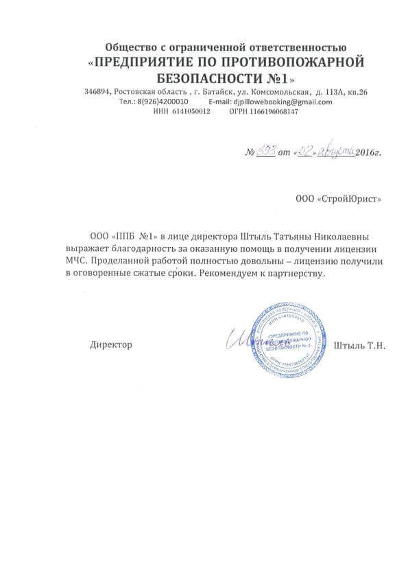 Отзывы клиентов "СтройЮрист" по лицензированию МЧС в Нижневартовске