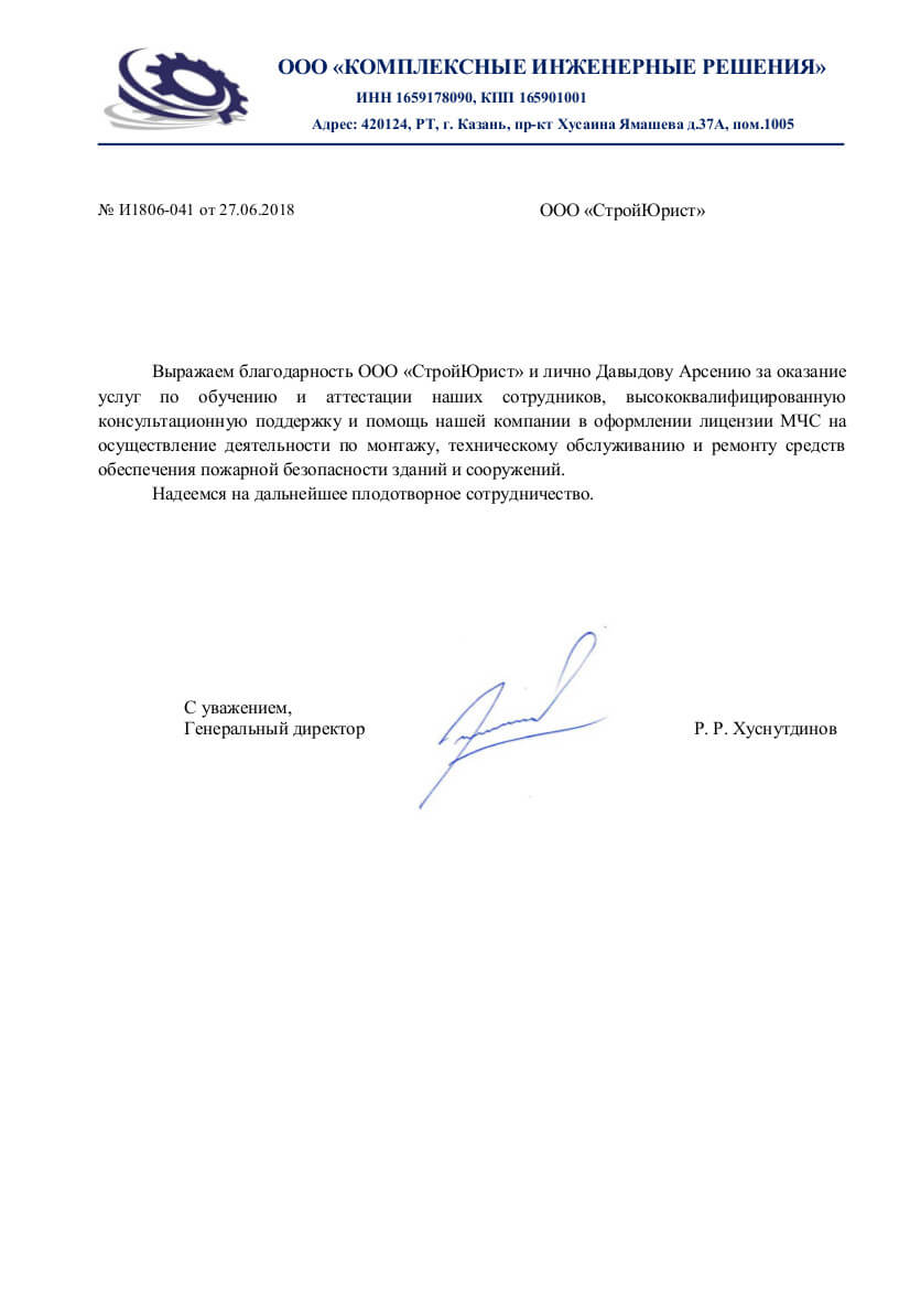 Отзывы клиентов "СтройЮрист" по лицензированию МЧС в Нижневартовске
