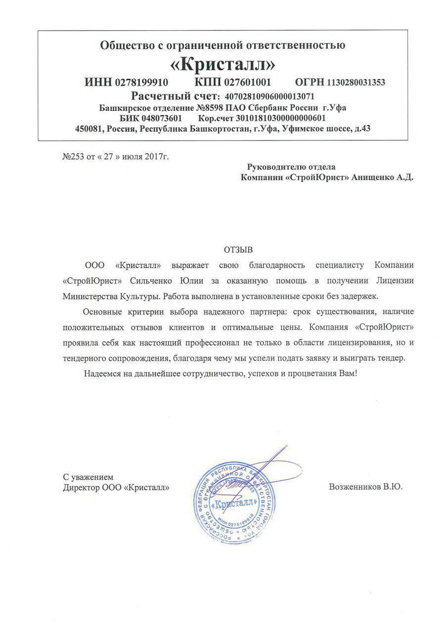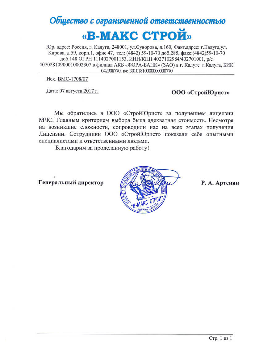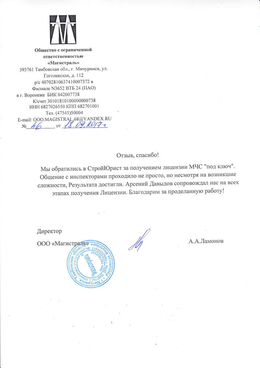 Отзывы клиентов "СтройЮрист" по лицензированию МЧС в Нижневартовске