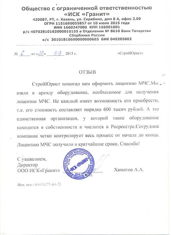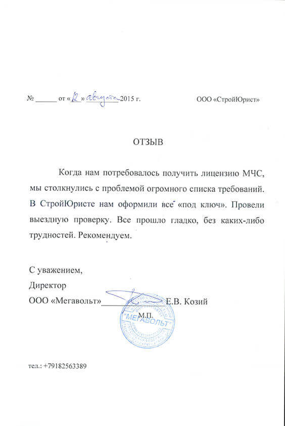 Отзывы клиентов "СтройЮрист" по лицензированию МЧС в Нижневартовске