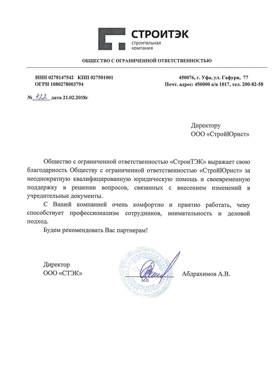 Отзывы клиентов "СтройЮрист" по регистрации фирм в Нижневартовске