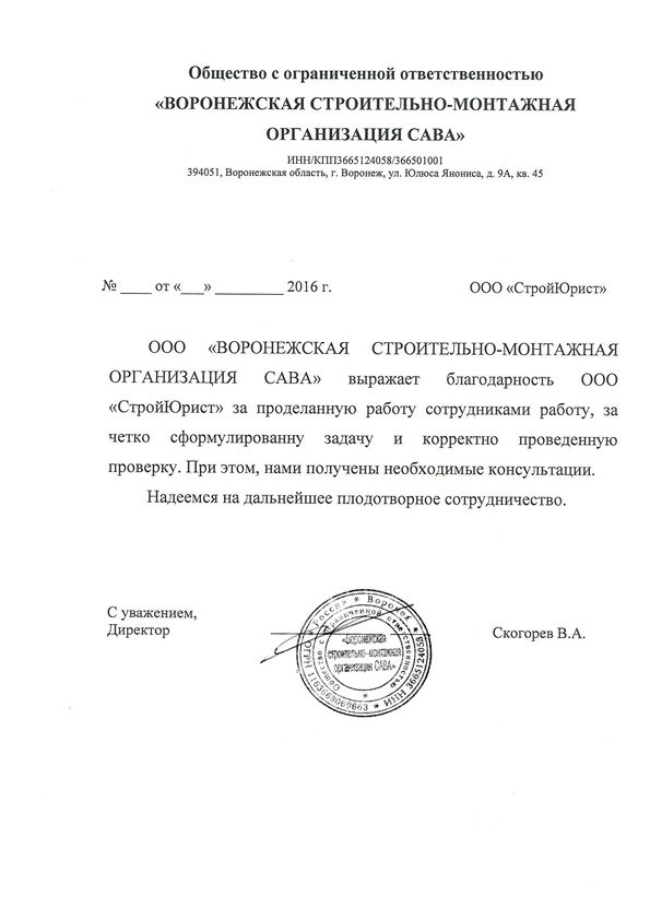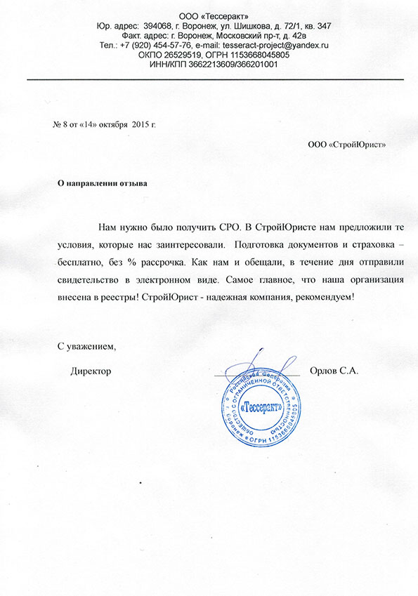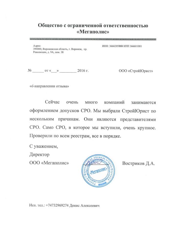 Отзывы клиентов "СтройЮрист" по вступлению в СРО в Нижневартовске