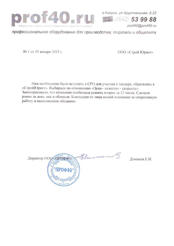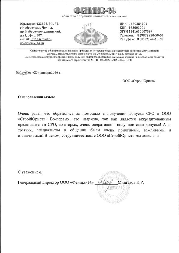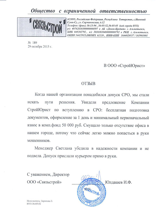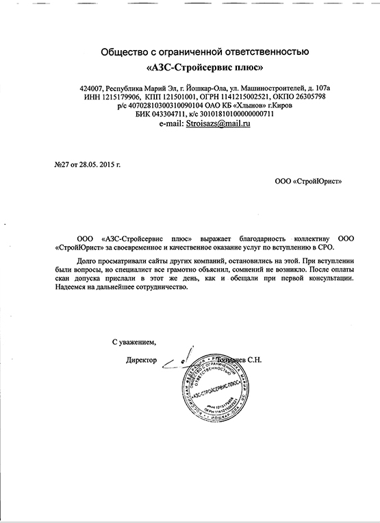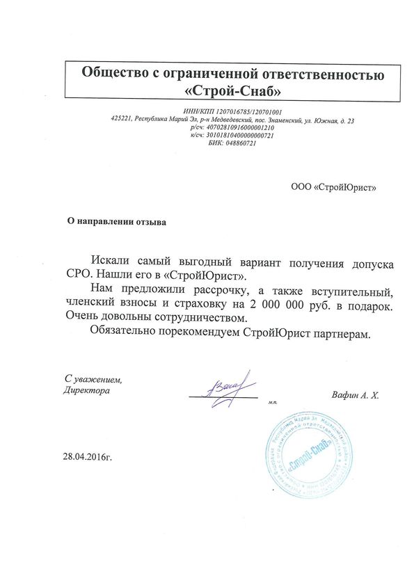 Отзывы клиентов "СтройЮрист" по вступлению в СРО в Нижневартовске