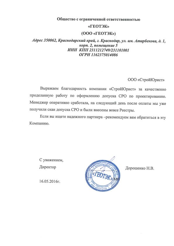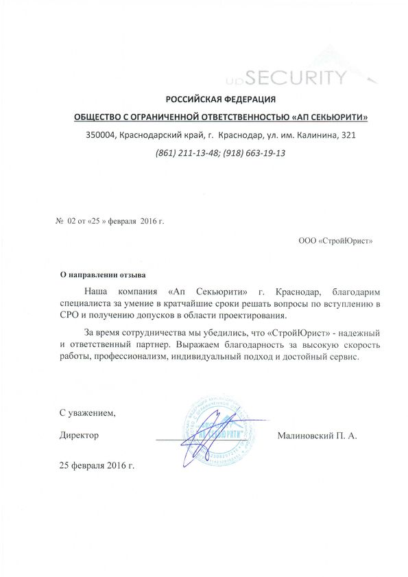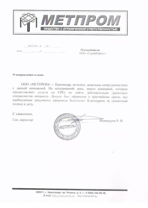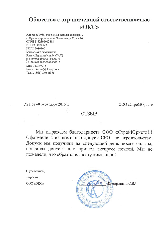 Отзывы клиентов "СтройЮрист" по вступлению в СРО в Нижневартовске