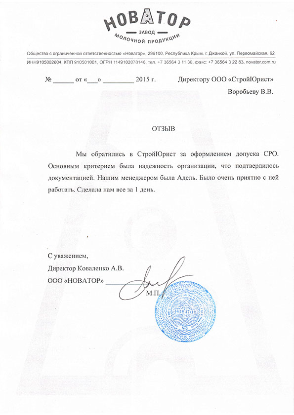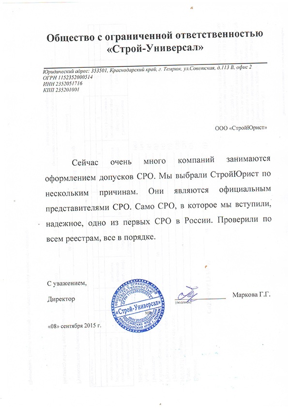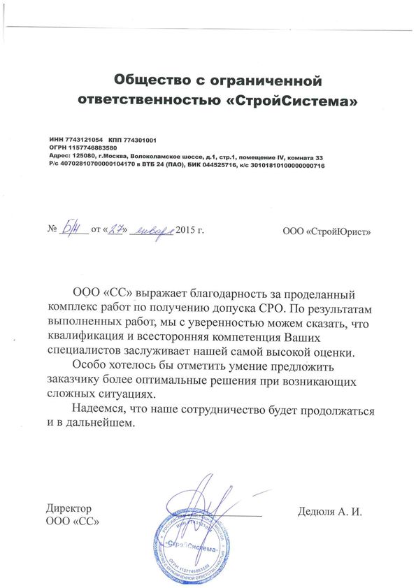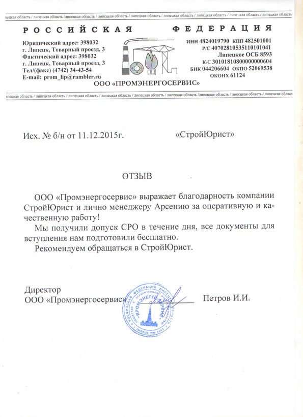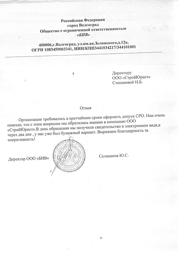 Отзывы клиентов "СтройЮрист" по вступлению в СРО в Нижневартовске