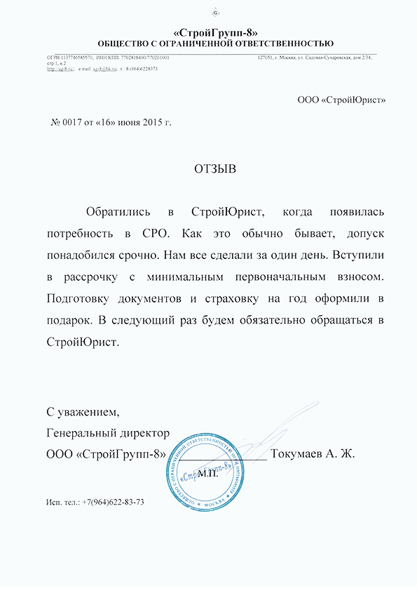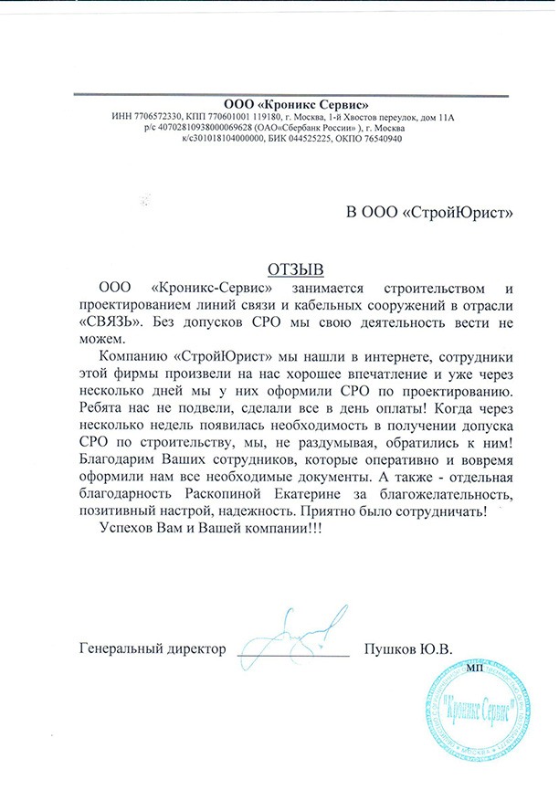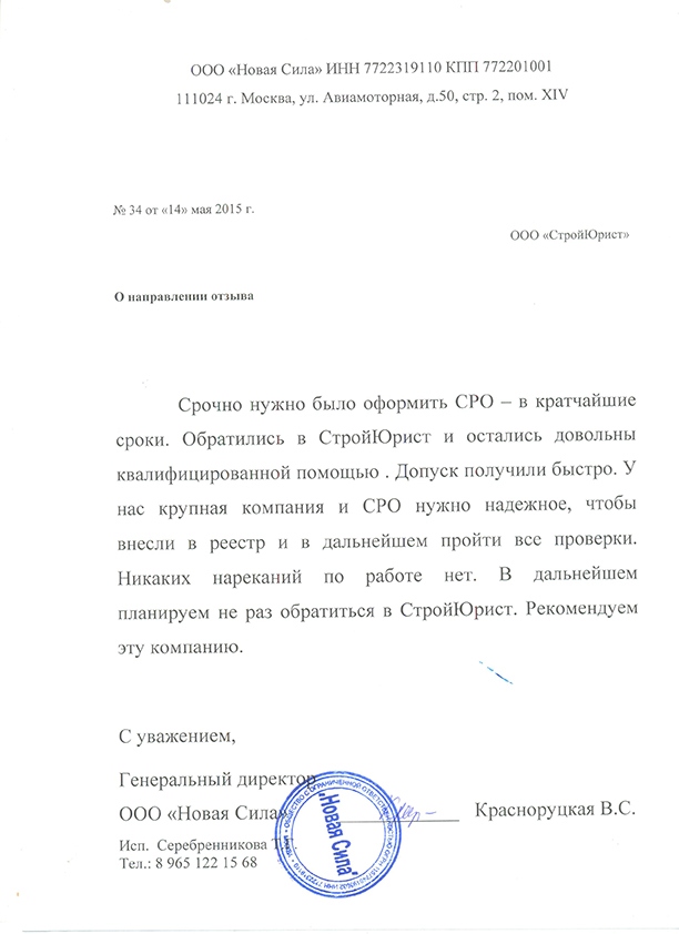 Отзывы клиентов "СтройЮрист" по вступлению в СРО в Нижневартовске
