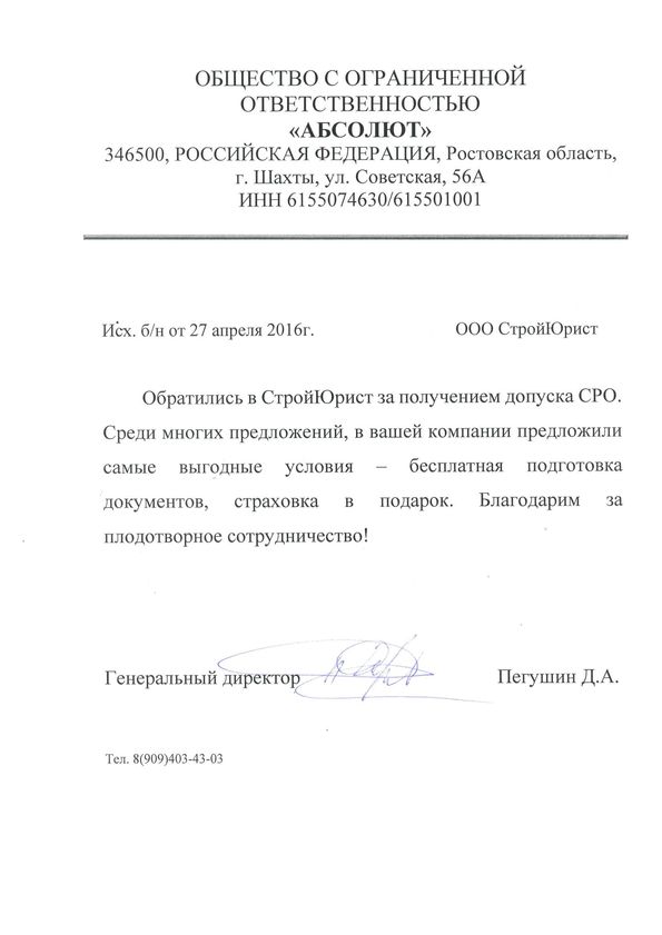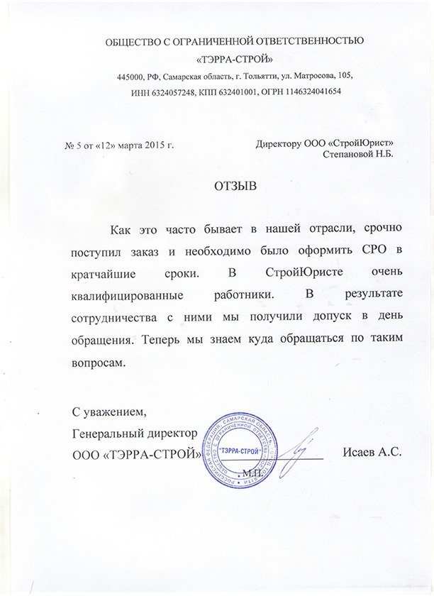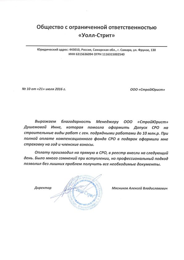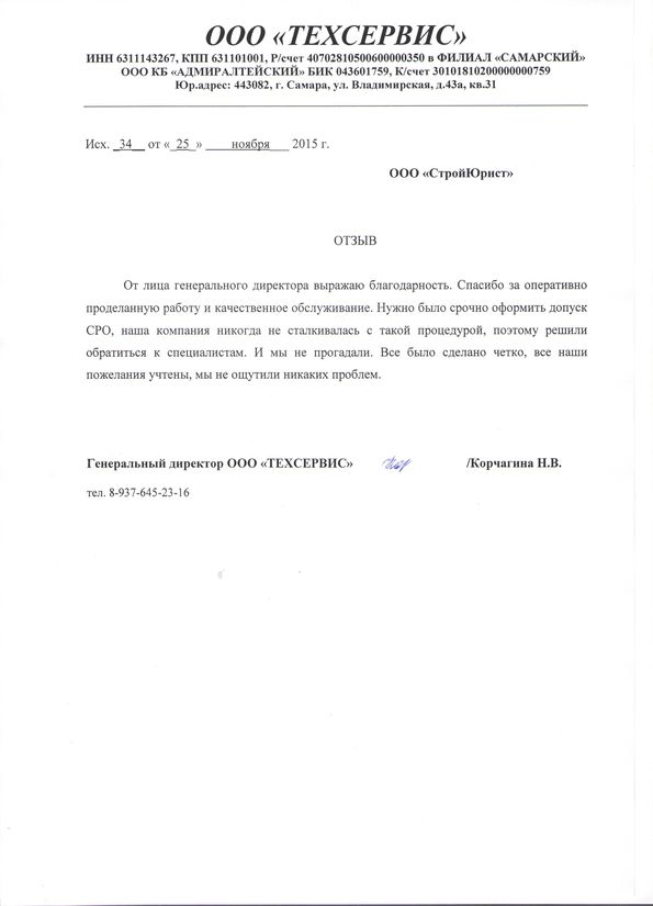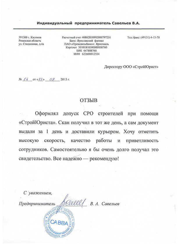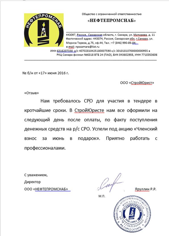 Отзывы клиентов "СтройЮрист" по вступлению в СРО в Нижневартовске