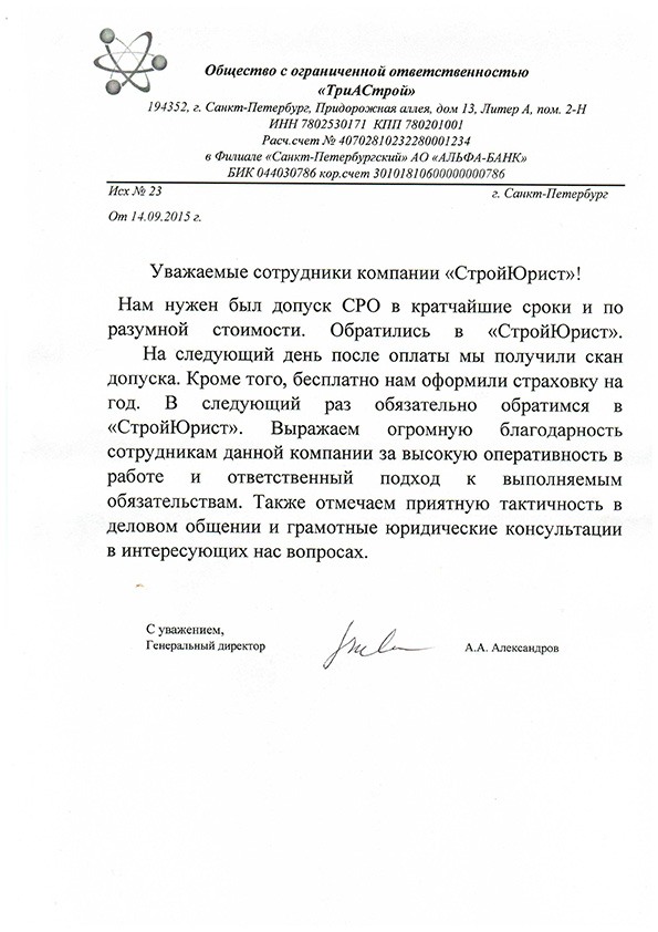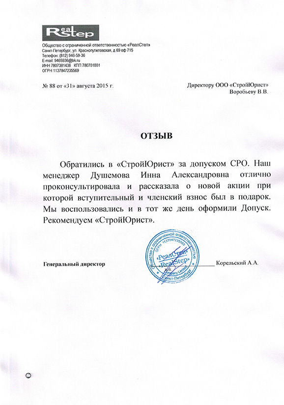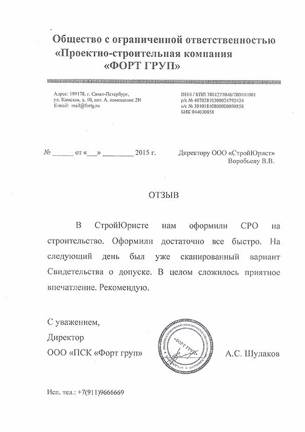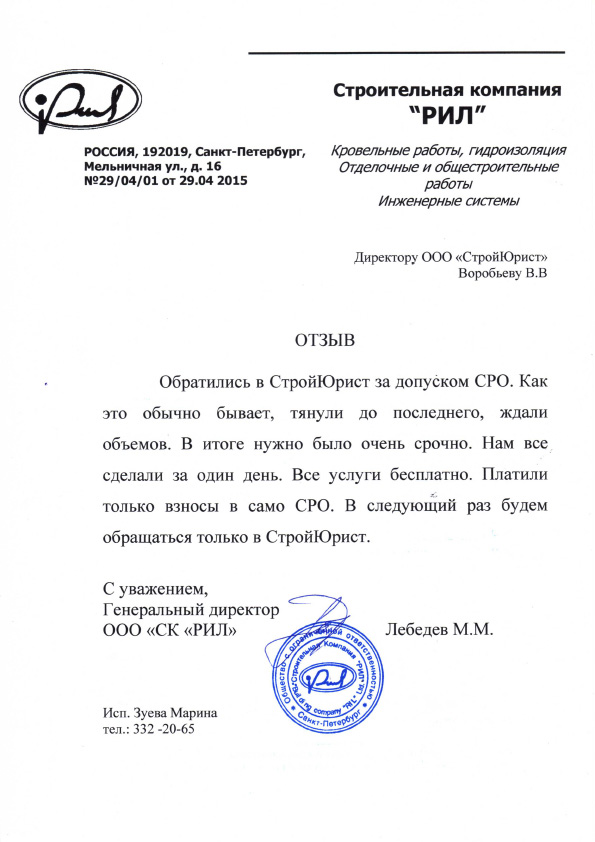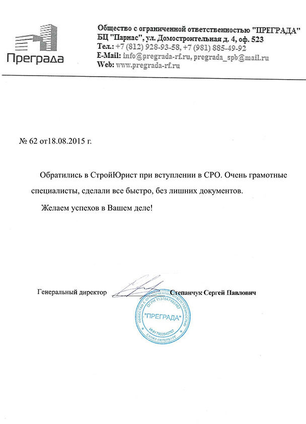 Отзывы клиентов "СтройЮрист" по вступлению в СРО в Нижневартовске