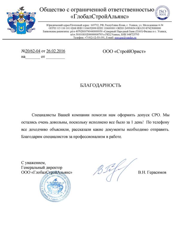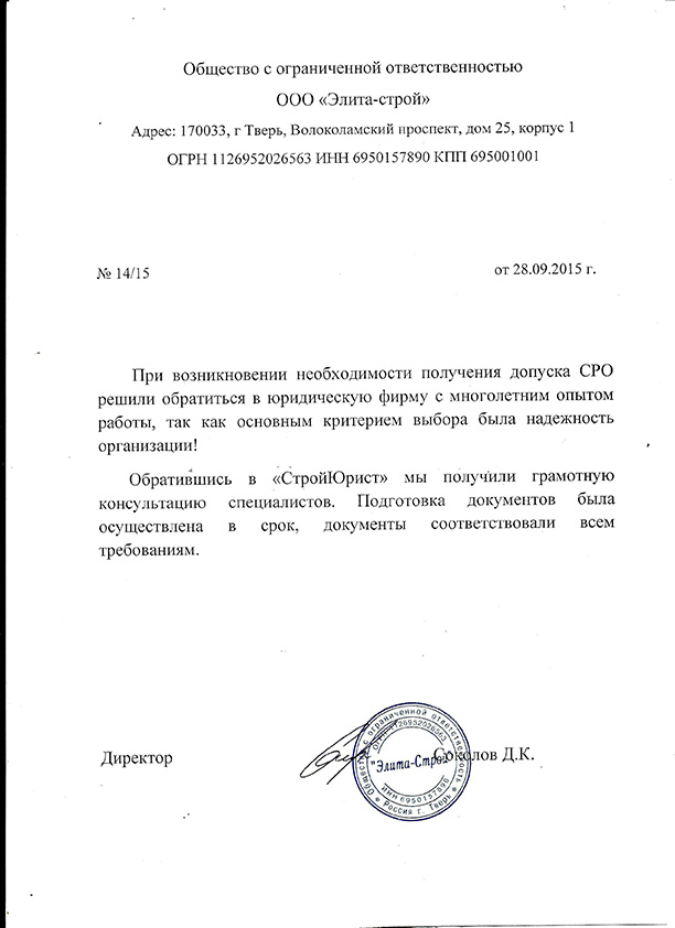 Отзывы клиентов "СтройЮрист" по вступлению в СРО в Нижневартовске