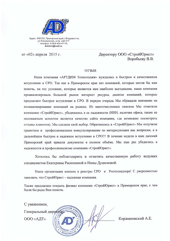 Отзывы клиентов "СтройЮрист" по вступлению в СРО в Нижневартовске