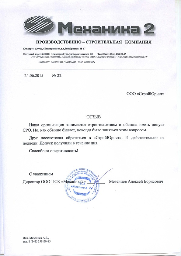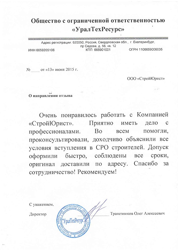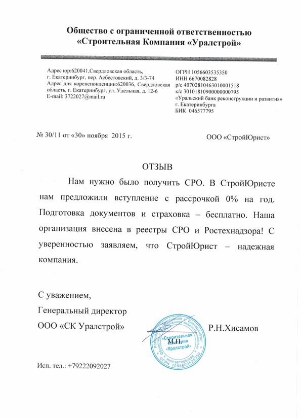 Отзывы клиентов "СтройЮрист" по вступлению в СРО в Нижневартовске