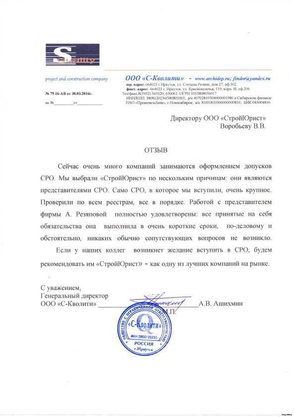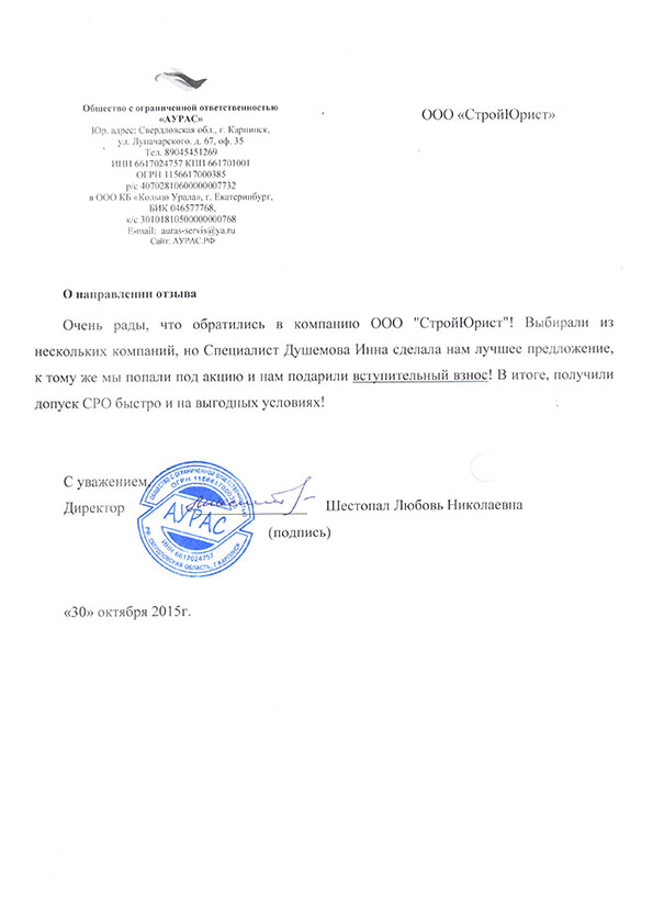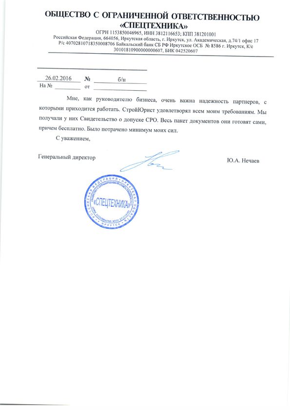 Отзывы клиентов "СтройЮрист" по вступлению в СРО в Нижневартовске