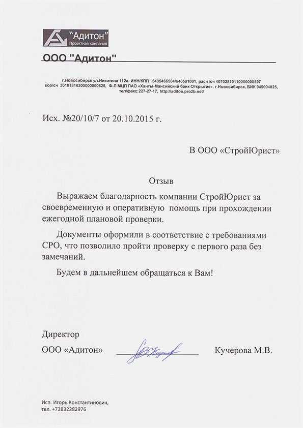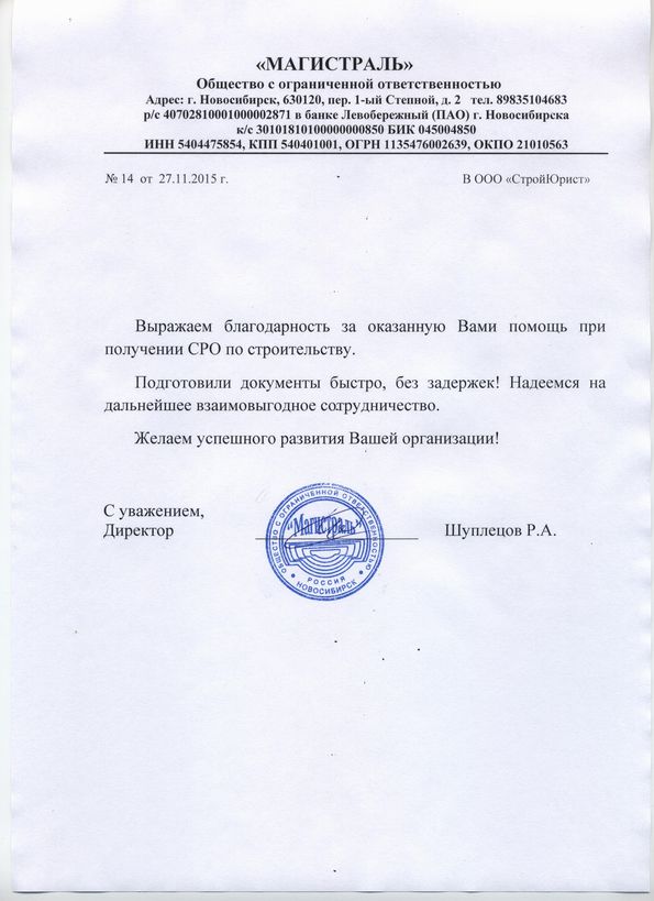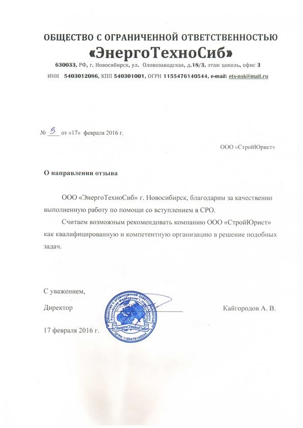 Отзывы клиентов "СтройЮрист" по вступлению в СРО в Нижневартовске
