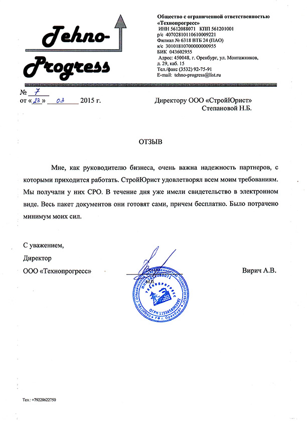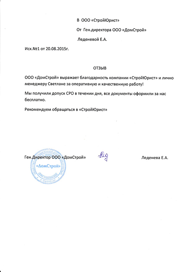 Отзывы клиентов "СтройЮрист" по вступлению в СРО в Нижневартовске