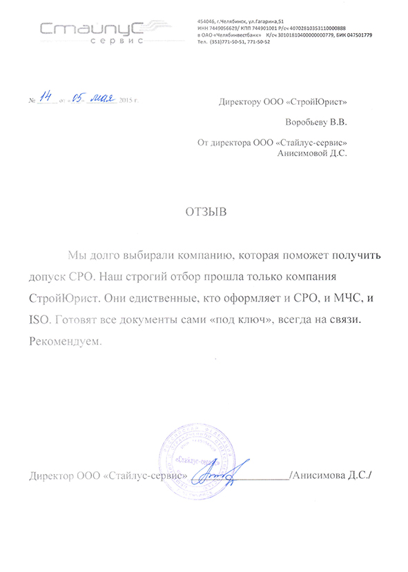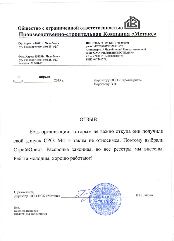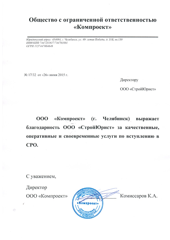 Отзывы клиентов "СтройЮрист" по вступлению в СРО в Нижневартовске