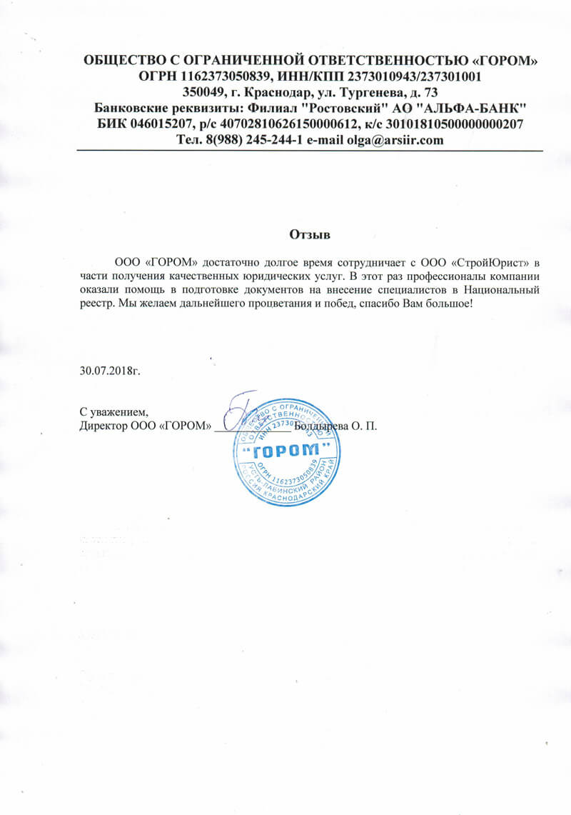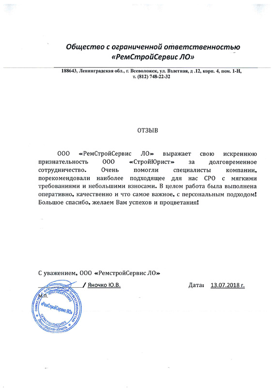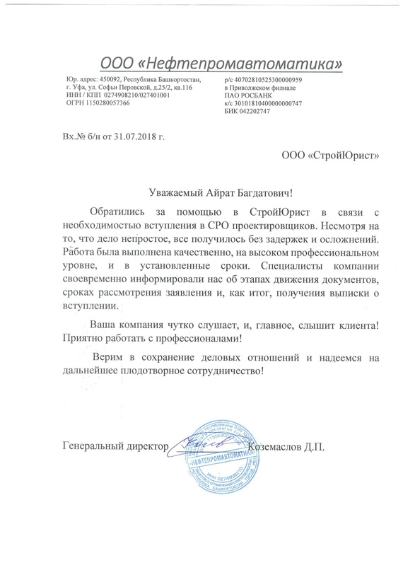Отзывы клиентов "СтройЮрист" по вступлению в СРО в Нижневартовске