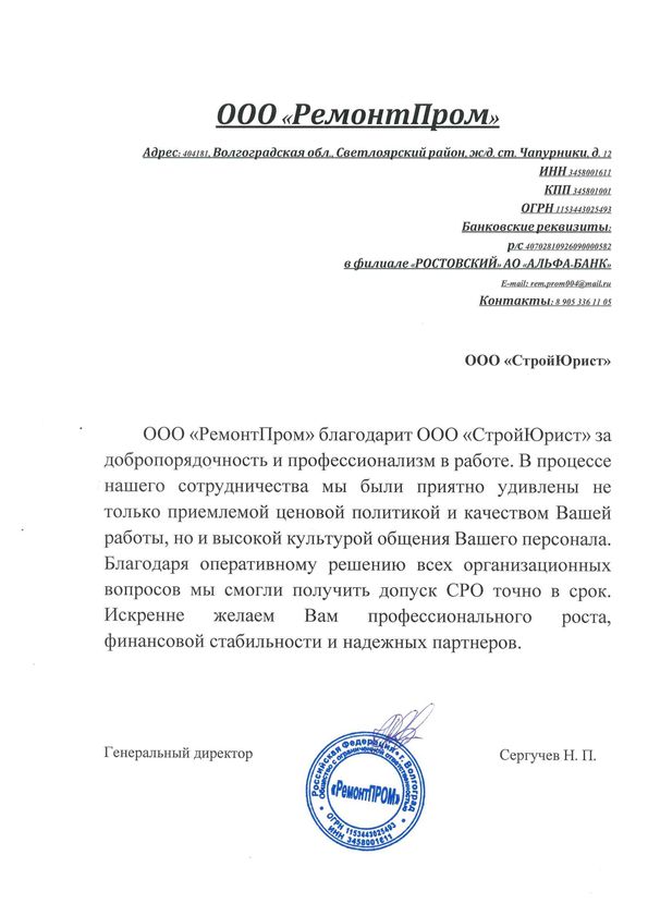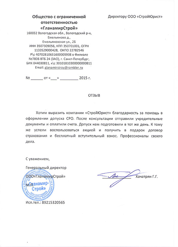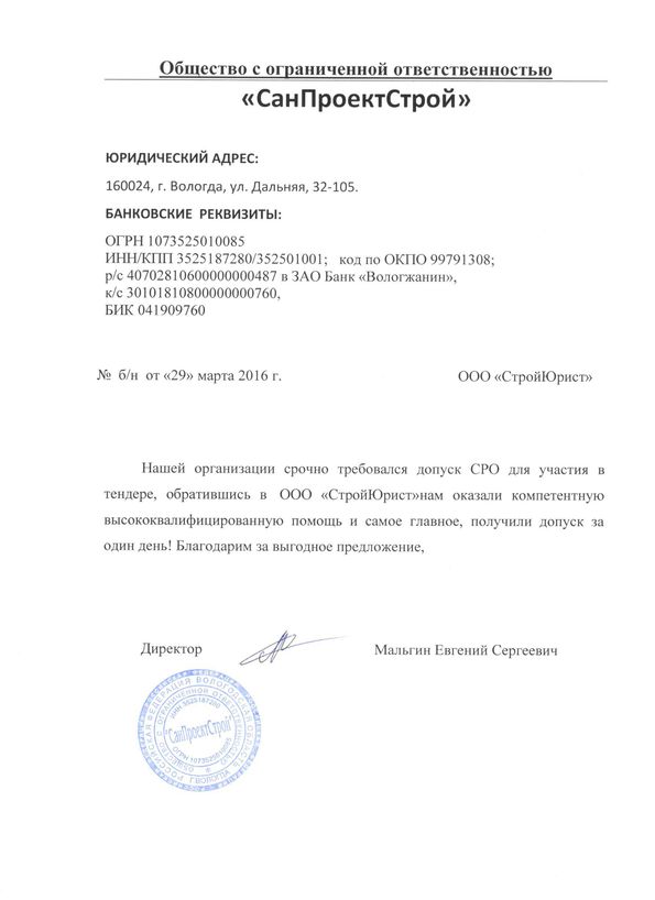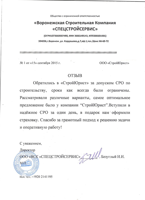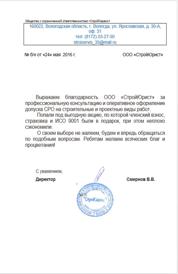 Отзывы клиентов "СтройЮрист" по вступлению в СРО в Нижневартовске